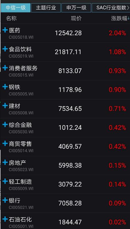 盘面来看,医药、食品饮料板块涨幅居前,此外,消费者服务、钢铁、建材、商贸零售等板块整体表现偏强。概念股方面,广电系、呼吸机及酒类、稀土概念领涨市场。