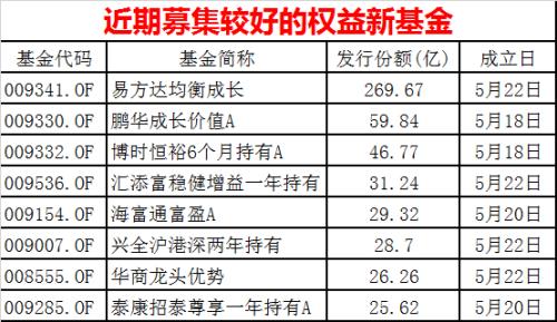 如5月23日,易方达发布易方达均衡成长股票基金合同生效公告,该基金最终成立规模逼近270亿元,问鼎年内首发规模最大的偏股型基金。基金行业历史上主动权益基金首发座次也随之改写,易方达均衡成长仅次于嘉实策略增长、兴全合宜、易方达新丝路,在权益基金首发史上,排名第4位。