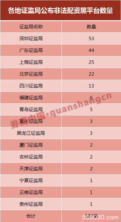 以深圳证监局为例,5月28日,深圳证监局发布深圳辖区第十批不具备合法证券期货经营业务资质的机构名单,包括宝利阁、操盘所、零柒配资、天天配资网等一批配资平台,名单多达53家。