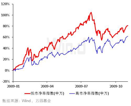 Wind数据显示,期间低市净率指数上涨81.21%,高市净率指数上涨61.92%,两者相差近20个百分点。