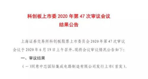 今日(6月19日)下午5点左右,根据上交所科创板上市委发布的公告,同意中芯国际在科创板的首发申请。