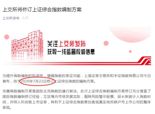 刚刚,上海证券交易所发布关于修订上证综合指数编制方案的公告,将于7月22日修订上证综合指数的编制方案。