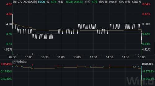 渝农商行6月19日分时图和资金流向 来源:Wind