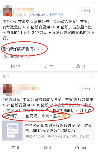 对于中金公司IPO扩募,不少网友称趁着市场好估值好,这把又可以多募一些。