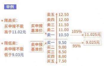 买入申报价格不得高于买入基准价格的105%,或买入基准价格以上十个最小价格变动单位(以孰高为准);卖出申报价格不得低于卖出基准价格的95%,或卖出基准价格以下十个最小价格变动单位(以孰低为准)。
