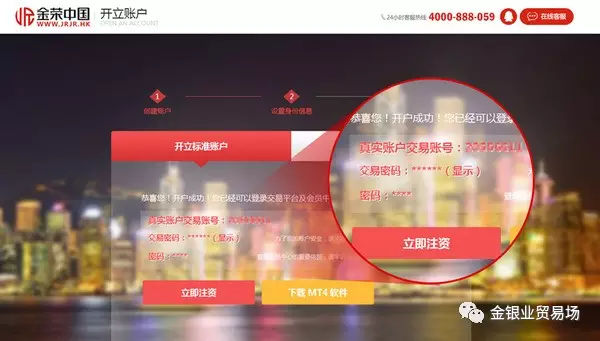 4、开立伦敦银账户成功、并获取账号和密码(可以选择立即注资或下载MT4交易平台)