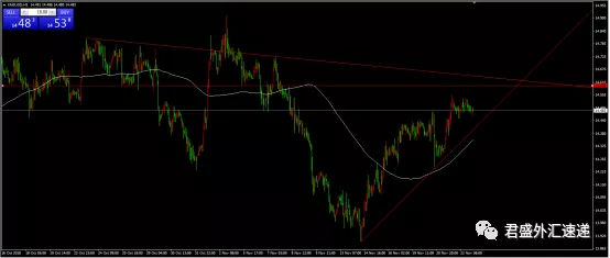 技术面分析:USDJPY 1小时图,昨日因美国感恩节休市美日陷入窄幅震荡,以先观望为主,关注上方113.150水平压力,RSI技术指标趋势运行复杂。谨慎入场,合理风控,以上个人建议,仅供参考。