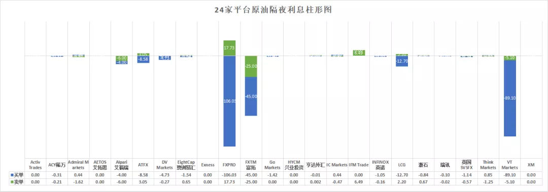 24家交易商9种货币对隔夜利息收取费率柱形对比图↓↓↓